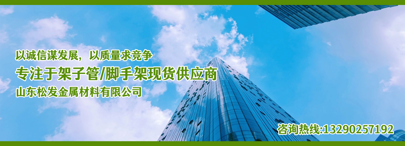 山東松發(fā)金屬材料有限公司主營架子管,扣件,鋼跳板,盤扣腳手架,輪扣腳手架,鋼支撐生產(chǎn)廠家。本廠專業(yè)生產(chǎn)銷售。  建筑用架子管、 主要用于房建,橋梁,鐵路,公路,地鐵,水庫,隧道,支撐。  架子管,扣件,鋼跳板,盤扣腳手架,輪扣腳手架,鋼支撐的優(yōu)越性及應(yīng)用“ ”產(chǎn)品因具有結(jié)構(gòu)簡單合理、設(shè)計巧妙、使用方便、安全、快捷、易于運輸、儲存、維護簡單等特點。  公司一貫堅持“質(zhì)量,用戶至上,優(yōu)質(zhì)服務(wù),信守合同”的宗旨,憑借著高質(zhì)量的產(chǎn)品,良好的信譽,優(yōu)質(zhì)的服務(wù),產(chǎn)品暢銷全球。歡迎廣大客戶來電洽談,共同發(fā)展,共創(chuàng)輝煌!  山東松發(fā)金屬材料有限公司秉承誠信服務(wù)、恪守信譽的宗旨,在同等的質(zhì)量下,保證以最低的價格,最完善的服務(wù),最高的信譽來答謝各界朋友的支持和厚愛,歡迎您的來電、咨詢,我們將竭誠為您服務(wù)!...